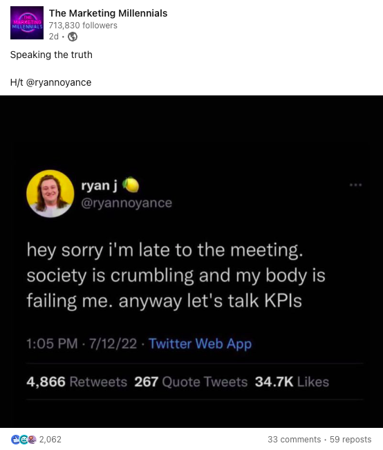 Animated GIFs do surprisingly well on LinkedIn, as do humor and jokes–when used correctly.