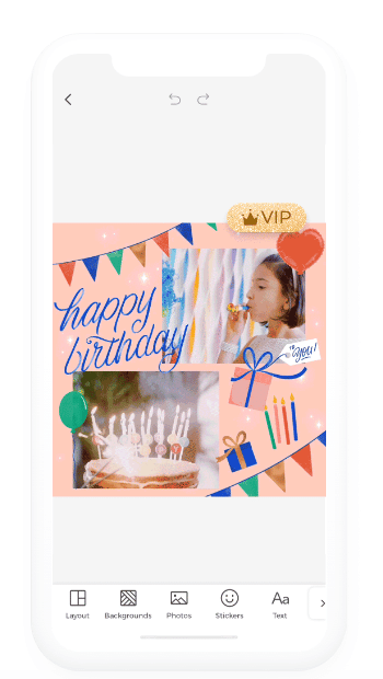 6. Happy with your new Insta collage? Hit the checkmark to confirm and move on to add stickers, text, or effects.