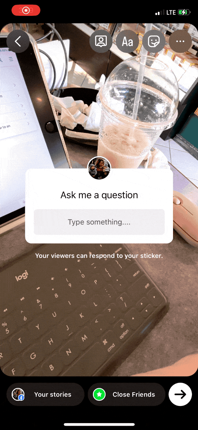 After you’ve created your Story photo or video, tap the sticker icon at the top. Then tap Questions.