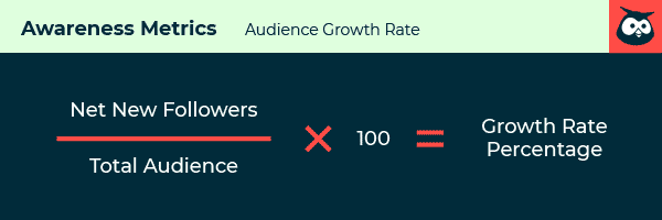 - Audience growth rate: Rather than a simple count of new followers, this is a measure of how your audience is growing (or shrinking) as a percentage of your existing followers.