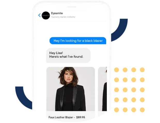 Example of Dynamite using a Heyday chatbot to show a customer black blazers in English.