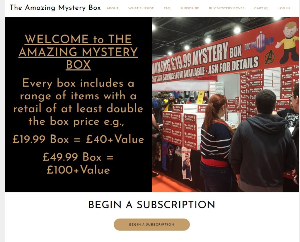 The Amazing Mystery Box offers a fun and nostalgic experience for fans of pop culture, TV, and comics, delivering themed boxes filled with licensed merchandise. With options tailored to franchises like Doctor Who, Marvel, and Star Wars, the company appeals to collectors and casual fans alike. The surprise element keeps the experience fresh, and the branding emphasizes value and excitement.