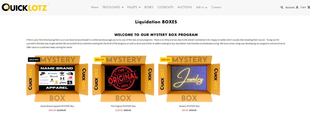 While Quicklotz provides strong value for volume buyers, the quality and condition of items can vary significantly, and returns are generally not accepted. It’s a solid option for experienced flippers and bargain hunters, but casual mystery box shoppers may prefer more curated and consumer-friendly platforms like JemLit.