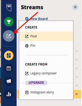 - From the Hootsuite dashboard, click the Publisher icon and select the Planner tab at the top.