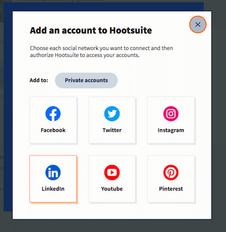First up, you need to connect Hootsuite and LinkedIn. Note that you can add both LinkedIn profiles and LinkedIn pages to your Hootsuite account.