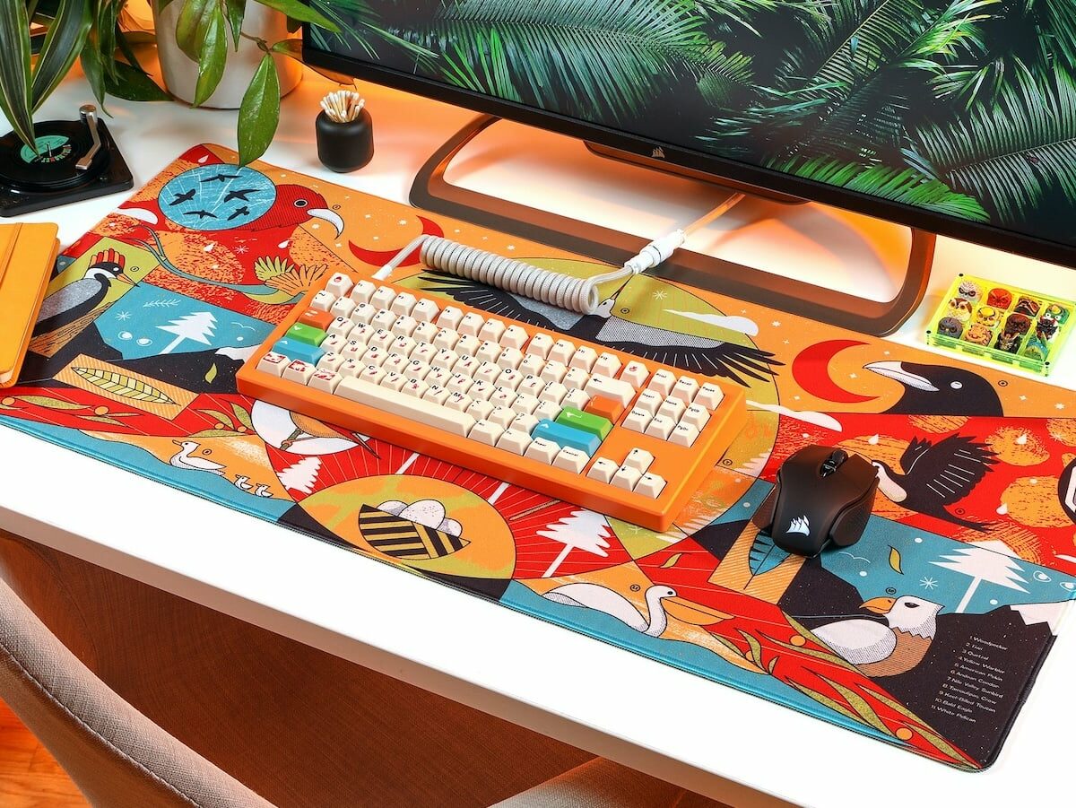Level up your desk’s aesthetics and functionality with the Drop + ArqKeebs DCD Bird Jungle Desk Mat with art.