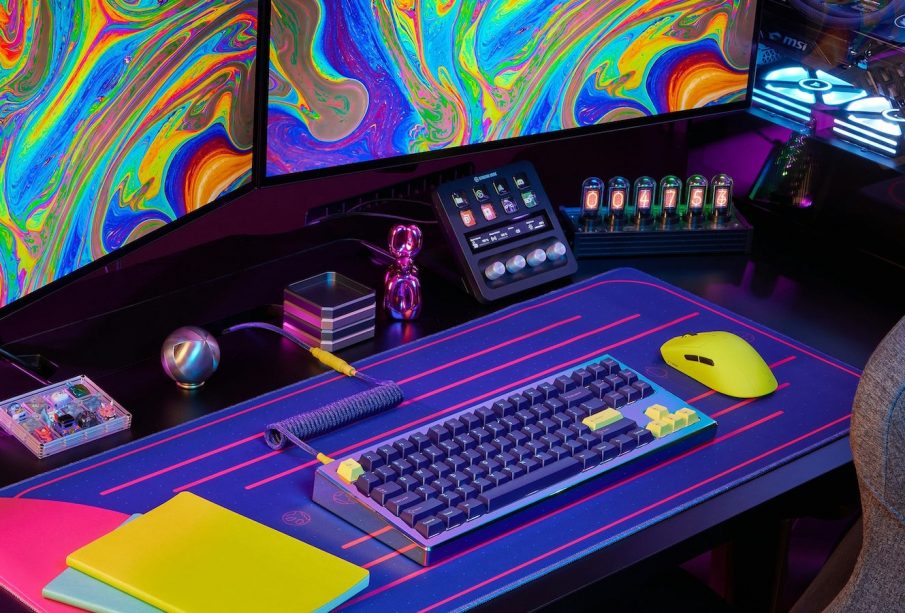The Drop Paragon Series Iridian Keyboard for desktop computers shines with its multicolored design inspired by the Greek goddess Iris.
