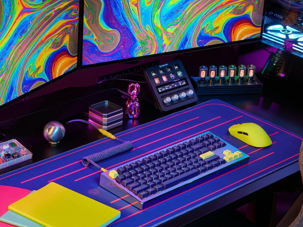 The Drop Paragon Series Iridian Keyboard for desktop computers shines with its multicolored design inspired by the Greek goddess Iris.