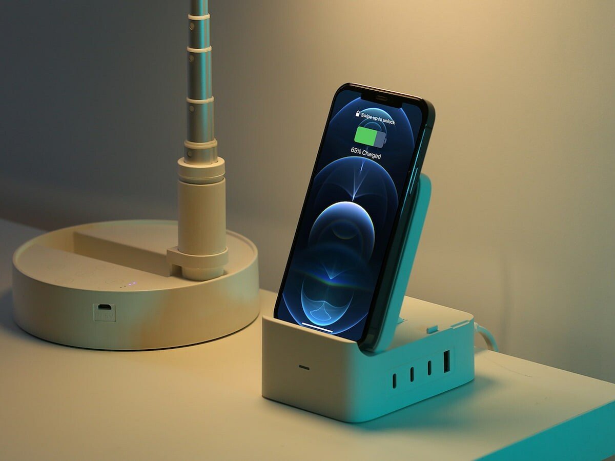 Charge your devices quickly and easily with the Fledging Spruce Charger GaN power hub. This useful gadget actually lets you fast charge up to 5 gadgets at once. And it provides 3 USB-C ports, 1 USB-A port, and a Qi wireless charging pad. This means you can charge pretty much any smartphone and a slew of other devices with just one hub. Meanwhile, the Spruce Charger’s versatile design reduces cord and charger clutter in your workspace. That’s right, this one charger replaces all the others. Furthermore, the GaN semiconductor allows this power hub to stay cooler, be smaller, and charge faster than silicon. Finally, the modern white design and curved edges blend in beautifully with your devices. Get ready for a whole new charging experience with this gadget.