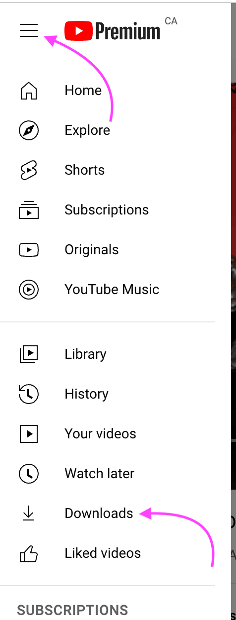 Step 4: Navigate to your video library by clicking on the hamburger icon in the top left corner and scrolling down to Downloads