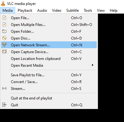 Step 4: Click Media in the top menu, and then Open Network Stream