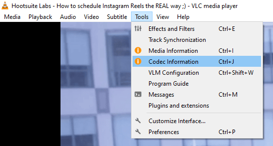 Step 6: Now that the video is playing, select the Tools tab in the top bar, and then select Codec Information.