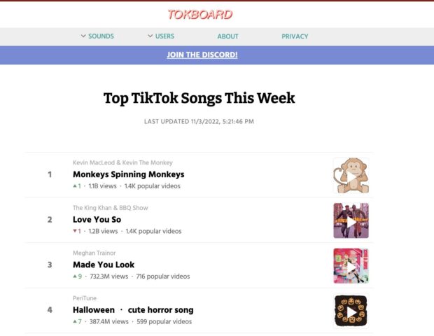 This resource lets you see real-time stats about specific songs and sounds on the app. You can see how well a sound is doing based on specific regions too. This is super helpful if you’re targeting a part of the world that you’re not currently in.