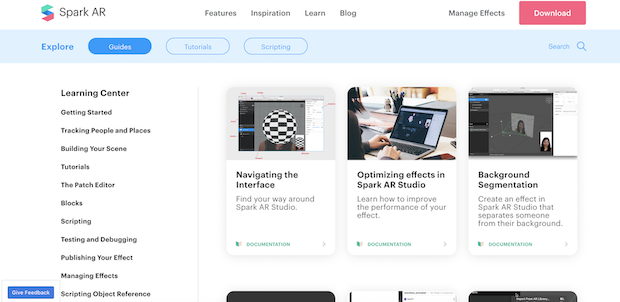 Need more guidance? Curious about face filters, lighting filters or other AR effects? Spark AR has tons of useful guides in its Learning Center: