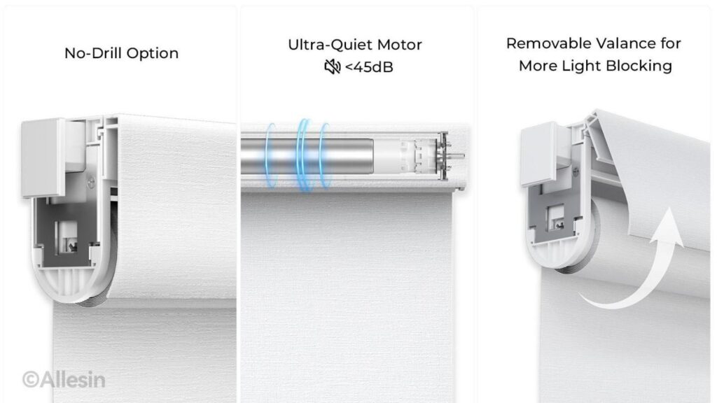 The Allesin Prestige Motorized Roller Shades offer a quiet, stylish, and genuinely smart way to control light, privacy, and comfort in any room—without the noise, wires, or hassle. With app scheduling, voice commands, and whisper-quiet motor under 45dB, they blend high-end function with everyday convenience that actually fits into real life.