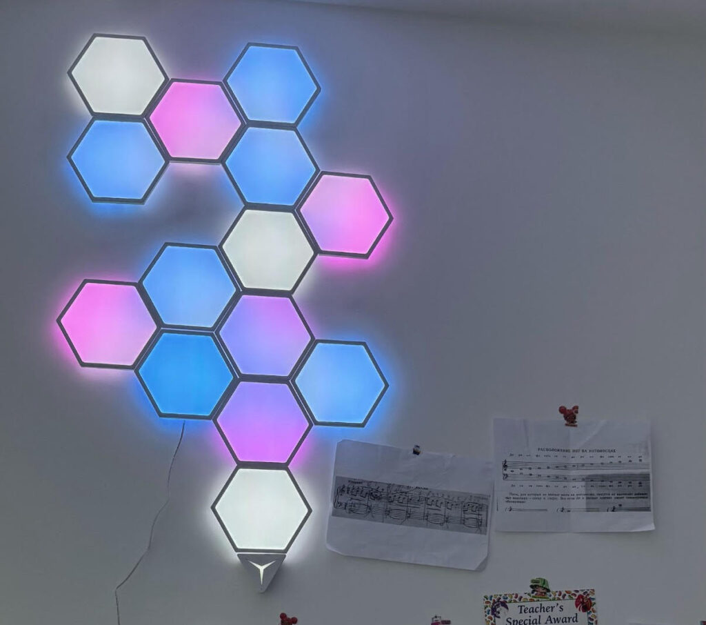 Start playing a song or boot up your favorite game, and the whole room comes alive in color—panels pulsing in time, lights shifting to the soundtrack, creating a sense of immersion that’s both subtle and cinematic.