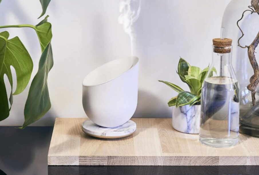 Lexon Miami Scent Ultrasonic Aroma Diffuser on a table next to plants