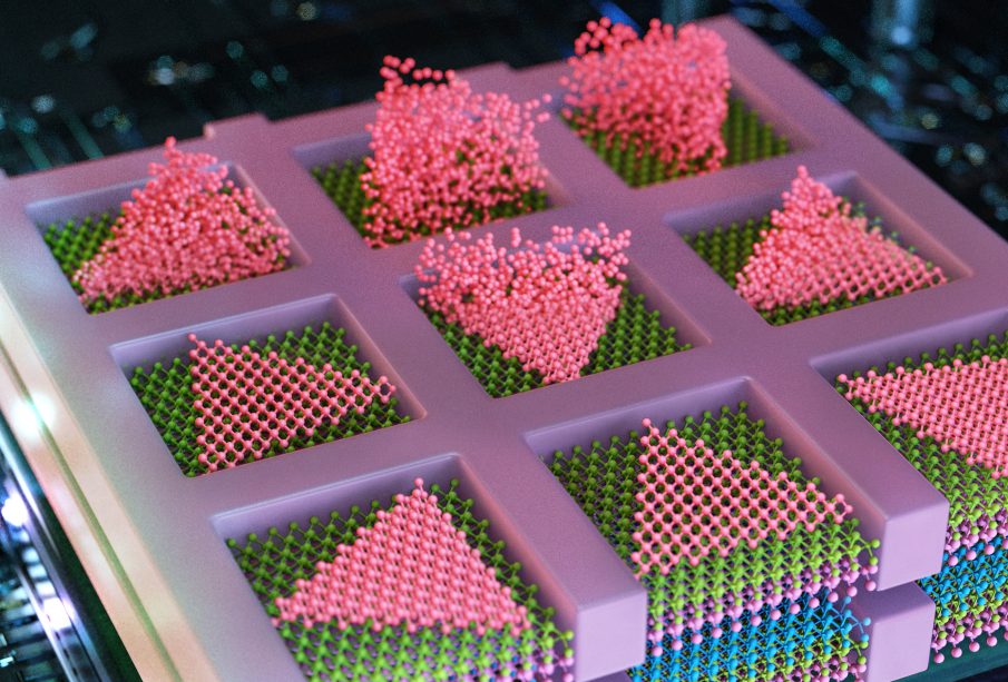 In 2023, Kim’s group reported that they developed a method to grow high-quality semiconducting materials on amorphous surfaces, similar to the diverse topography of semiconducting circuitry on finished chips. The material that they grew was a type of 2D material known as transition-metal dichalcogenides, or TMDs, considered a promising successor to silicon for fabricating smaller, high-performance transistors. Such 2D materials can maintain their semiconducting properties even at scales as small as a single atom, whereas silicon’s performance sharply degrades.