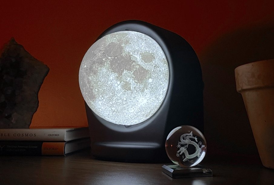 Accentuate your home in a unique way with the MOONDIAL lunar phase lamp. Using a patent-pending lighting system, it actually syncs to the lunar month of 29.53 days. In doing so, it re-creates the orbital interactions of the sun, moon, and earth. Moreover, the creators of this realistic lunar globe used data from NASA’s Lunar Reconnaissance Orbiter to generate its design. That way, you know it’s truly accurate. Furthermore, each lamp has a white LED light and a dimmer, which allows you to set your preferred brightness level depending on your needs at the time. Additionally, you will notice the dynamic color quality of the lunar surface as it looks from Earth. That’s thanks to the variable shell thickness of the lunar globe, which consists of recyclable, biodegradable plastic that goes easy on the environment.