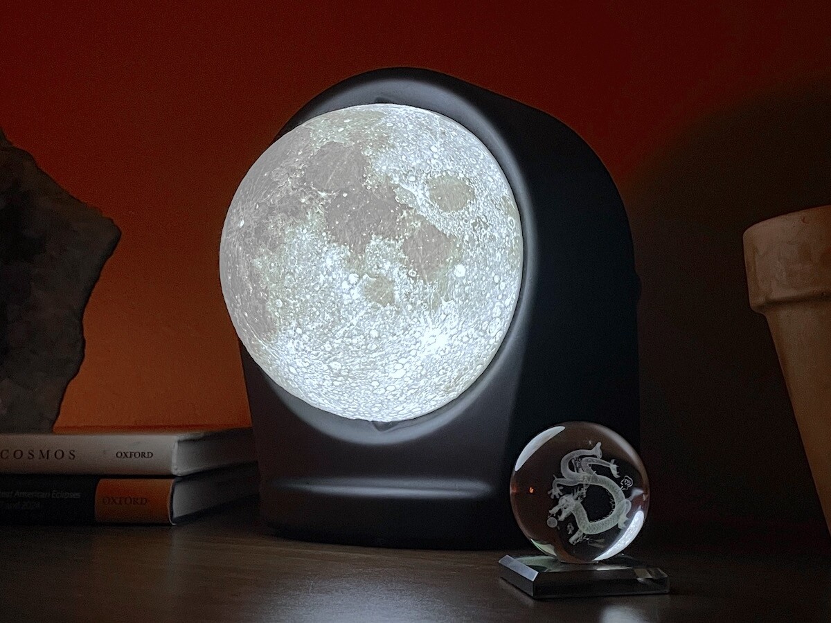 Accentuate your home in a unique way with the MOONDIAL lunar phase lamp. Using a patent-pending lighting system, it actually syncs to the lunar month of 29.53 days. In doing so, it re-creates the orbital interactions of the sun, moon, and earth. Moreover, the creators of this realistic lunar globe used data from NASA’s Lunar Reconnaissance Orbiter to generate its design. That way, you know it’s truly accurate. Furthermore, each lamp has a white LED light and a dimmer, which allows you to set your preferred brightness level depending on your needs at the time. Additionally, you will notice the dynamic color quality of the lunar surface as it looks from Earth. That’s thanks to the variable shell thickness of the lunar globe, which consists of recyclable, biodegradable plastic that goes easy on the environment.
