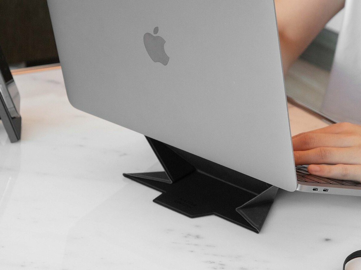 Set up your workstation anywhere with the Native Union Rise Laptop Stand. This sleek, foldable stand features an origami-inspired design and elevates your laptop up to a 20-degree viewing angle. This balance of form and function helps to improve your posture and reduce strain on your neck and shoulders while you work. And the one-hand use makes this a pretty convenient MacBook accessory. What’s more, it’s super slim at just 2.5 mm thin. And with the coated nylon and reinforced fiberglass panels, this workspace gadget is built to last. Moreover, it improves your MacBook’s performance by preventing overheating. Furthermore, the flat, portable design works with all 13–16-inch MacBooks. Otherwise, all other 13–16-inch laptops with no ventilation slots work with the Rise Laptop Stand. Finally, this accessory attaches easily to your laptop with adhesive sticky gel.