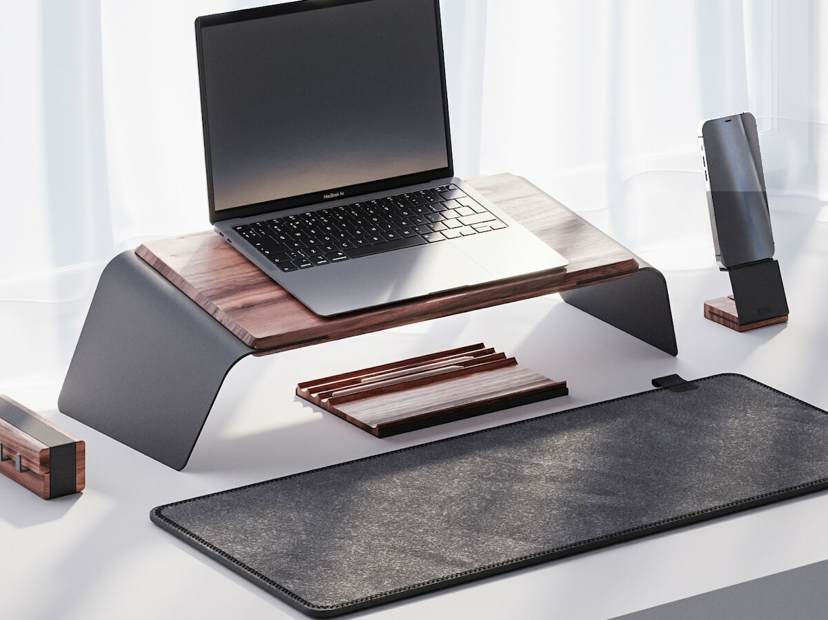 NOOE Config 01 Desk Set includes a phone and laptop stand, cable manager, and more » Gadget Flow