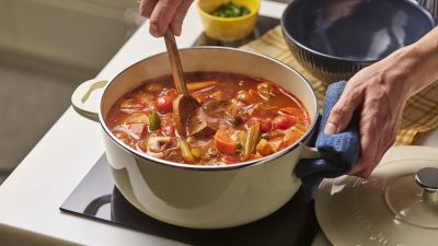 This nontoxic pot uses innovative PuraSteel and PuraCotta materials
