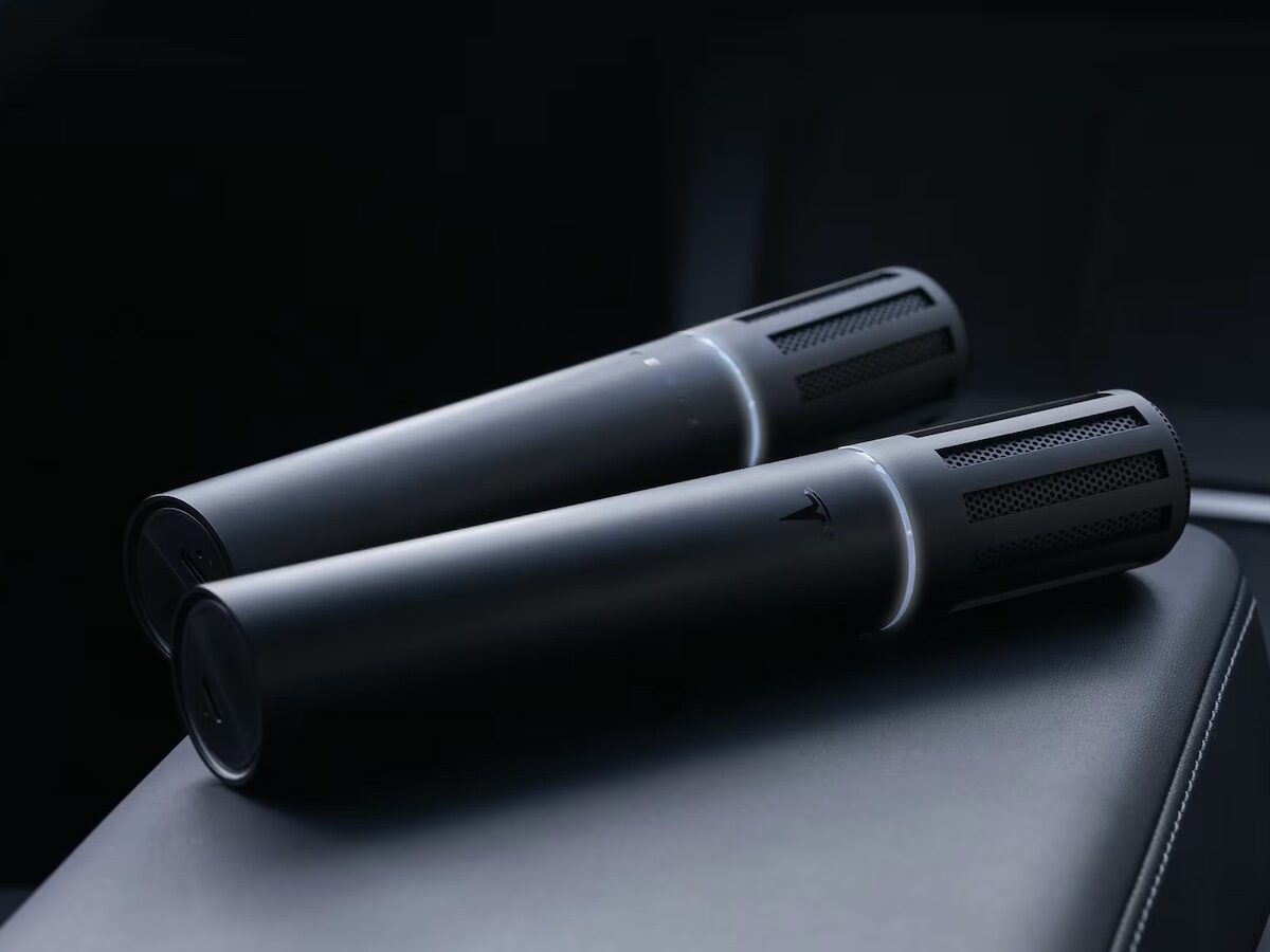 Turn every drive into a joyful sing-along with the Tesla CaraokeMic.