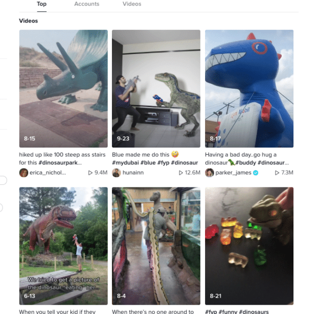 They can also get your content discovered by people interested in a particular topic, who might be searching for a specific phrase or tag. For instance, if I want to watch some videos about dinosaurs (and who wouldn’t?), I can just search for videos tagged #dinosaur and then gorge on triceratops content for the rest of the night.