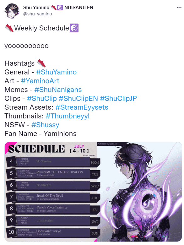 - Post your upcoming schedule for the week