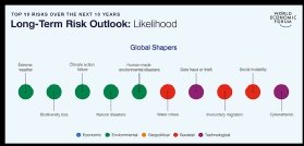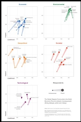 Over the past 15 years of forecasts by the World Economic Forum, the most pressing risks facing the world have shifted from economic threats to the risks posed by cyber wars and technological dystopia.