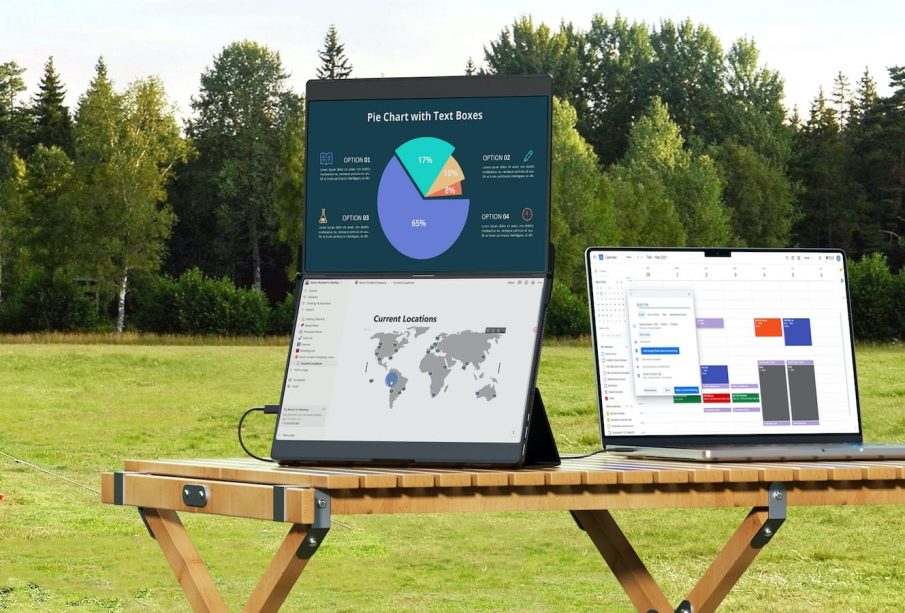 Take a larger external screen on the move with the JSAUX FlipGo portable monitor. It connects to your laptop using just 1 cable.