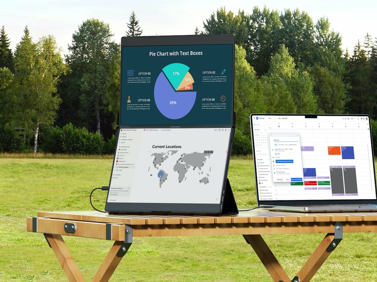 Take a larger external screen on the move with the JSAUX FlipGo portable monitor. It connects to your laptop using just 1 cable.
