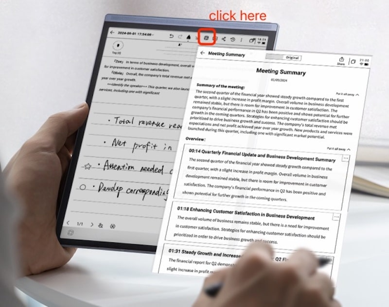 Elevating transcription to intelligent action, the AI Meeting Summary feature is a game-changer. With a single, intuitive tap, it expertly distills even the most extensive recordings into concise, strategically actionable outlines.