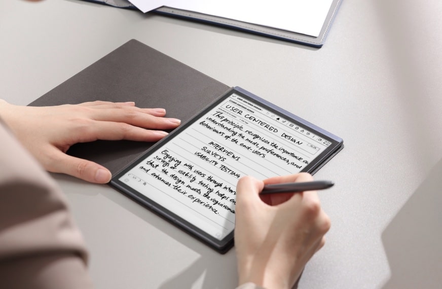 Slim, lightweight, and unobtrusive, the Air 2 weighs only 230 grams and measures just 5mm at its thinnest point. Its 8.2-inch E Ink screen (1440×1920, 293 PPI) provides a sharp, eye-friendly display ideal for long reading or writing sessions. The screen minimizes eye strain while offering a tactile experience that serves as digital paper, making it comfortable for day-long use in professional and academic contexts.