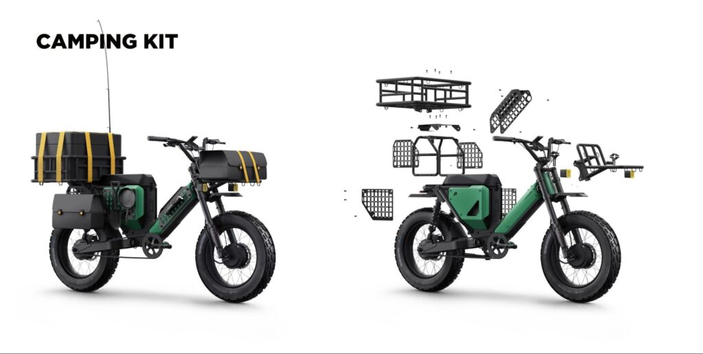 The Camping Kit is for when you want to go beyond the last parking lot. Reinforced racks hold your tent, cookware, and other gear without rattle or sway. Everything stays stable while you keep rolling deeper into nature.