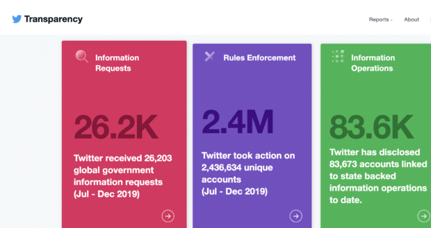 On August 19, Twitter announced that it rebuilt its biannual Twitter Transparency Report site into a new Transparency Center.
