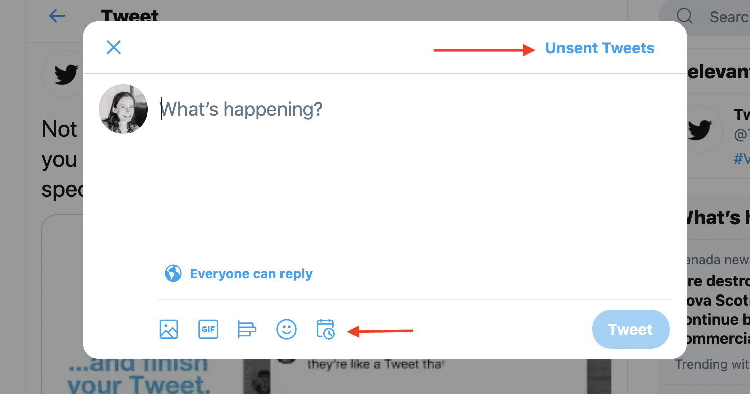 To schedule the Tweet to publish once it’s ready, click the calendar icon in the Composer. Then choose the specific day and time you want the Tweet to publish.