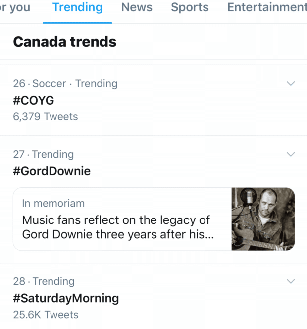 For example, below is a description explaining why #GordDownie was trending in Canada in mid-October: