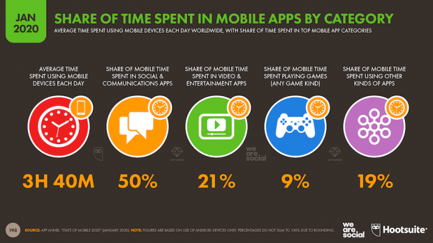 People spent 1.75 trillion hours using mobile phones over the past 12 months. And they spent roughly half that time using social and communications apps.