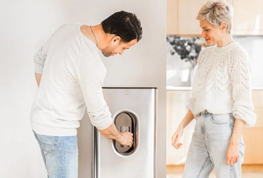 This air-to-water dispenser creates up to 10 liters of alkaline water per day