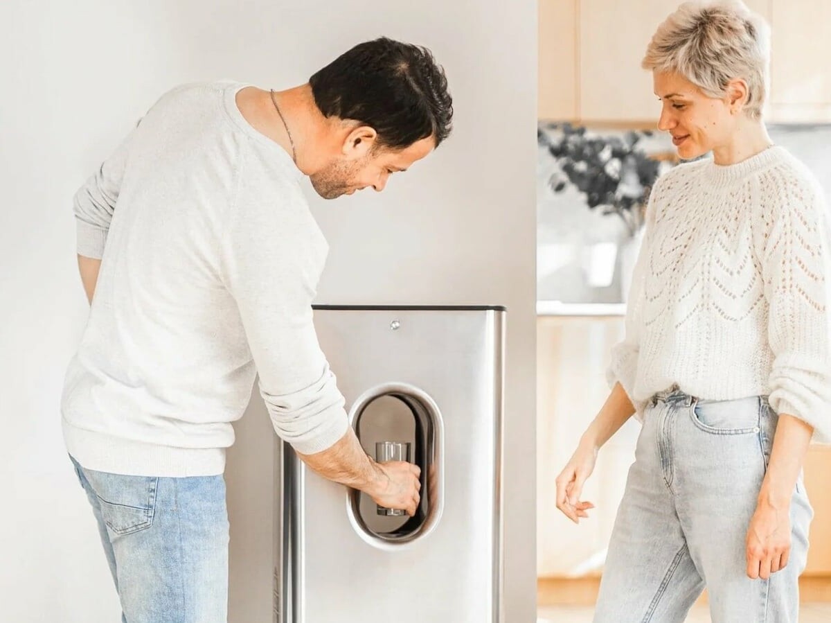 This air-to-water dispenser creates up to 10 liters of alkaline water per day