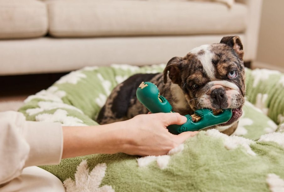 The Woof Bite n’ Brush keeps your dog entertained while taking care of their oral health. Its easy-to-use design lets your dog brush while chewing.