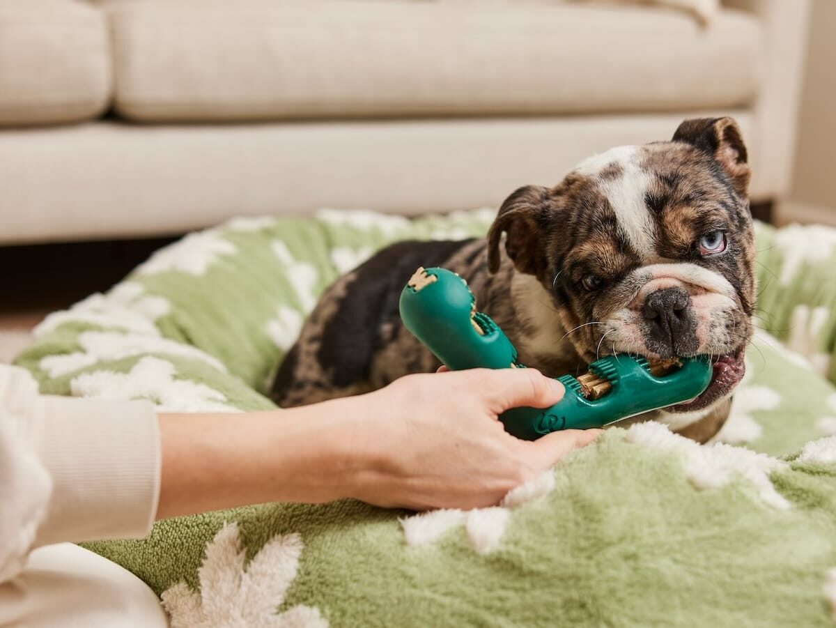 The Woof Bite n’ Brush keeps your dog entertained while taking care of their oral health. Its easy-to-use design lets your dog brush while chewing.