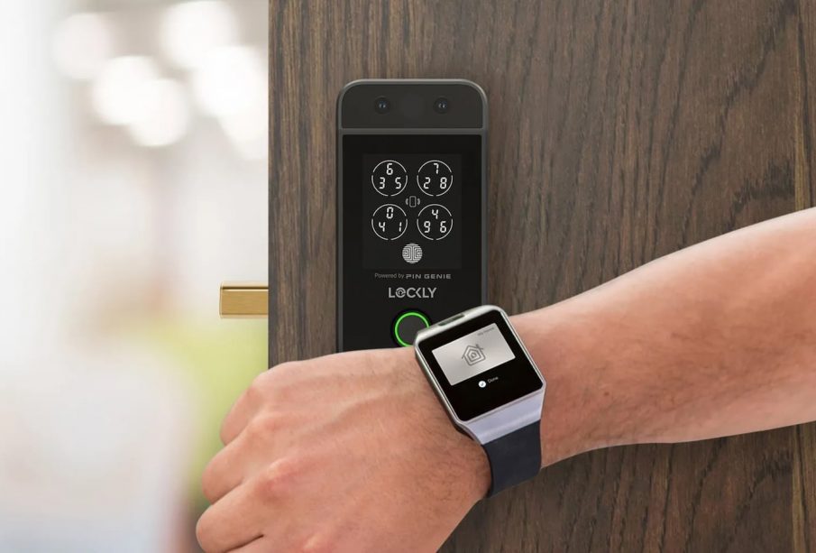 Meet the Lockly Visage facial recognition smart lock. It unlocks when you approach with Apple Home Keys or Apple Watch.