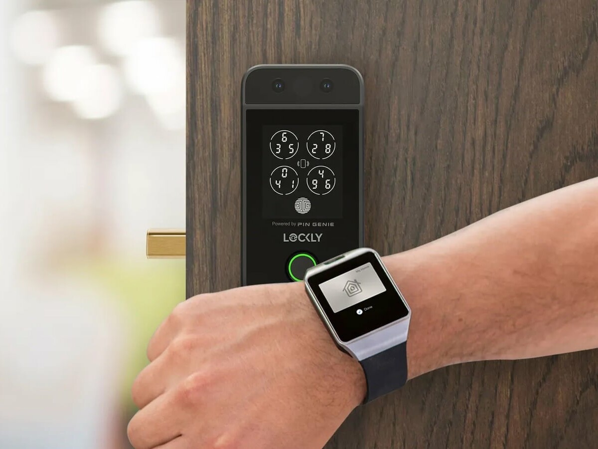 Meet the Lockly Visage facial recognition smart lock. It unlocks when you approach with Apple Home Keys or Apple Watch.