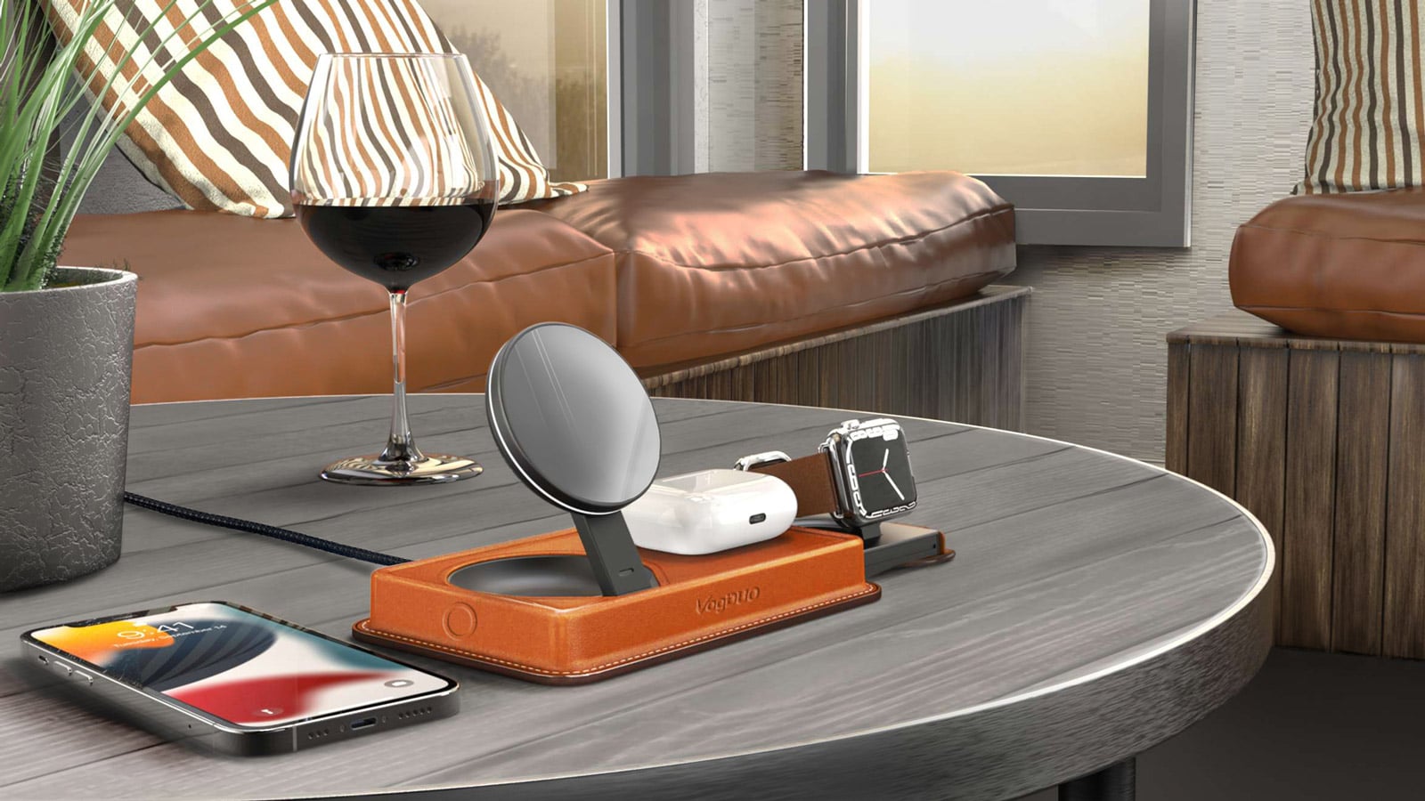 VogDUO 3-in-1 leather wireless charger looks great and is portable