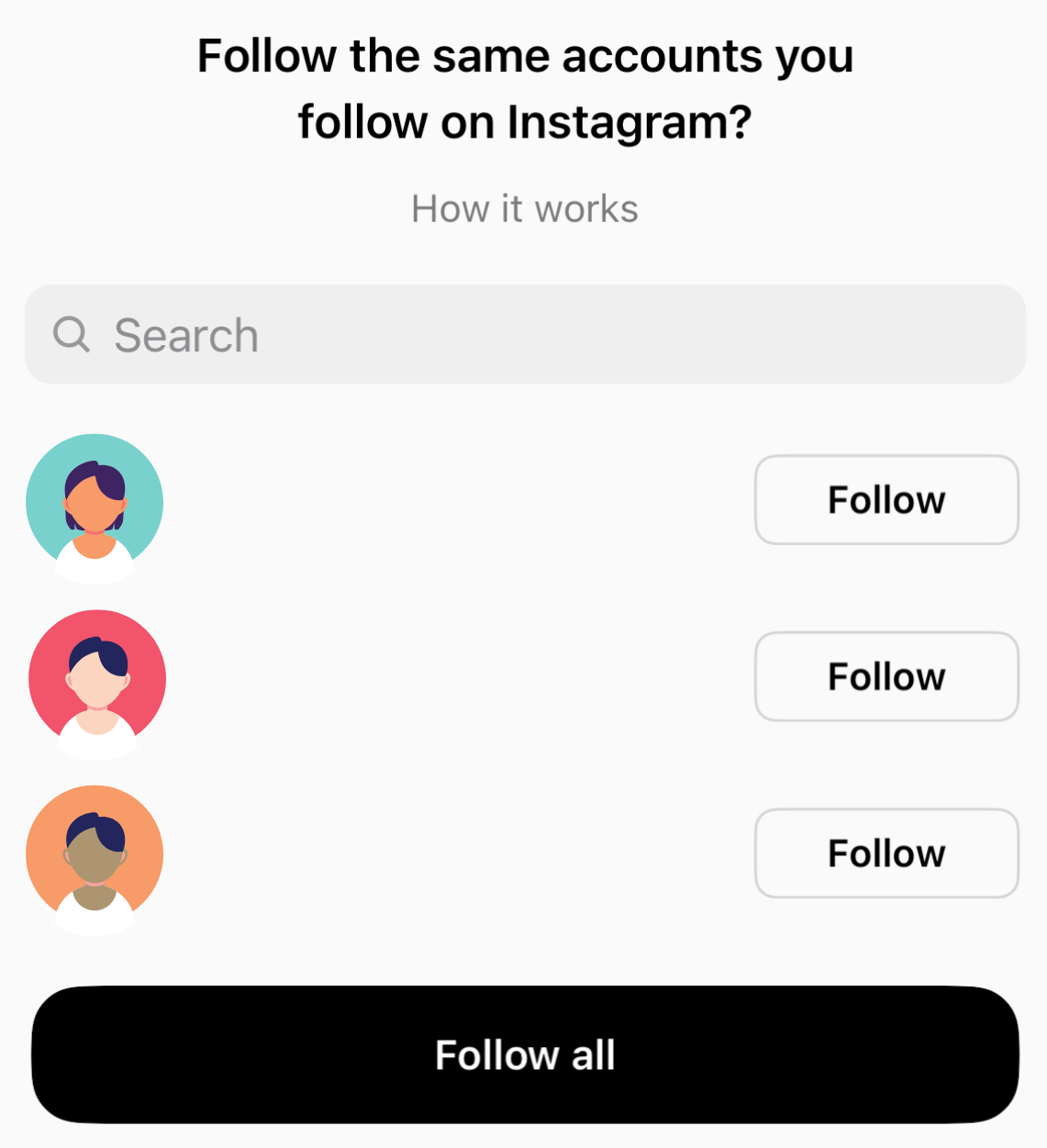 Because Threads is so closely linked to Instagram, you’ll have the option to auto-follow the accounts you currently follow on Instagram.