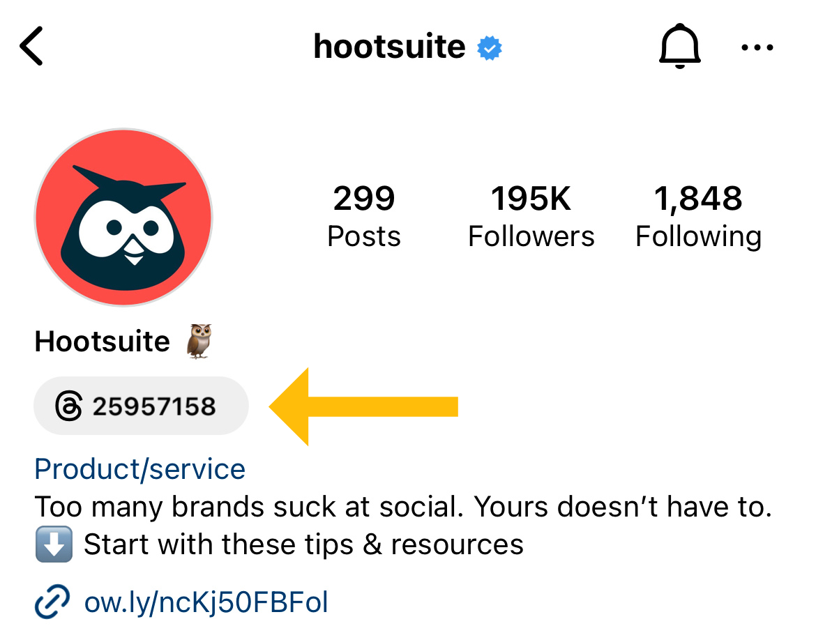 Not sure if you have the right user on Threads? You can use their Instagram profile to confirm someone’s identity before interacting with them on Threads.