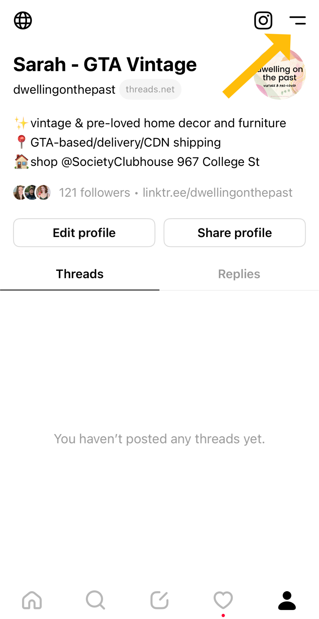 To delete a Thread, head over to your profile and select the Thread you want to remove. Click the … in the top right-hand corner.
